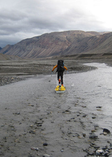 Dear Wilderness Engineering, The Base Camp Sled System was the sled system selected by our team for use during an unsupported ski trek from Broughton Island to Pangnirtung on Baffin Island in Canada's eastern Arctic. The trek covered a distance of 217 kilometers over sea ice, frozen rivers and lakes and the extremely rugged and world-renowned Pangnirtung Pass. Our Wilderness Engineering sleds were loaded with 14 days supplies and weighed approximately 125 pounds. The duffel bag was roomy, easily accessible and constructed out of bombproof materials. The shape and construction of the duffel bag and sled also allow for the easy exterior attachment of articles such as thermoses, camera bags and more bulky items such as sleeping mats. The sleds towed easily, gliding smoothly over snow, ice and even gravel and rock. In one area we actually sat on the sleds and rode them down the frozen Owl River for an entire day! The harness and pole system proved to be perfectly suited for the backcountry skiing that was our mode of travel. Light weight, roomy, rugged and completely dependable, all in all an excellent system for cross country winter travel in all types of terrain.